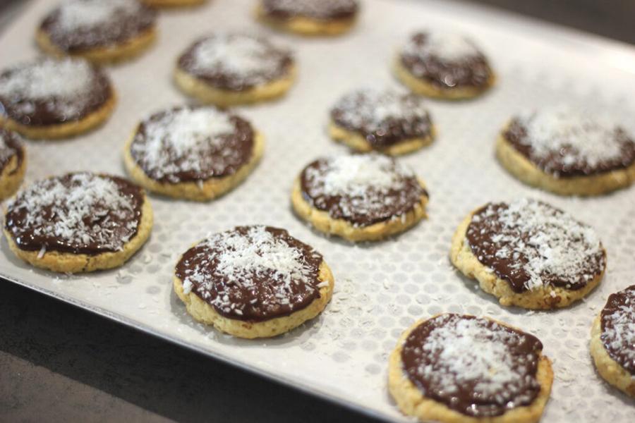 • Laissez-les refroidir avant de les badigeonner de chocolat fondu et de les saupoudrer de noix de coco.
