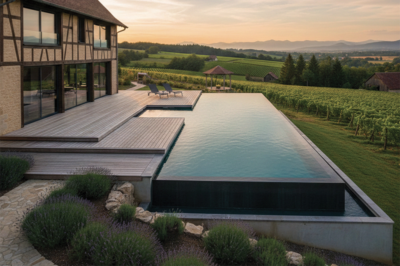 En résumé, la piscine à débordement est une expérience immersive où design, innovation et panorama se rencontrent. Qu’il s’agisse d’un petit bassin ou d’un espace spectaculaire intégré à la nature, elle transforme chaque baignade en un moment suspendu.