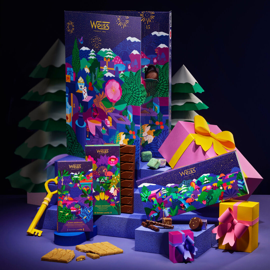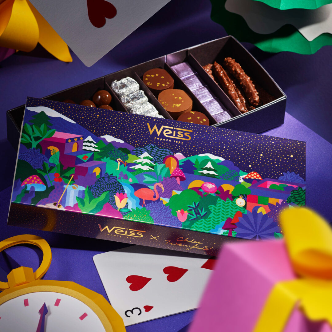 La Chocolaterie Weiss présente sa collection limitée de Noël 2024, nommée Weiss au Pays des Merveilles. Celle-ci offre un univers coloré, où les éléments du conte se mêlent aux traditions festives.